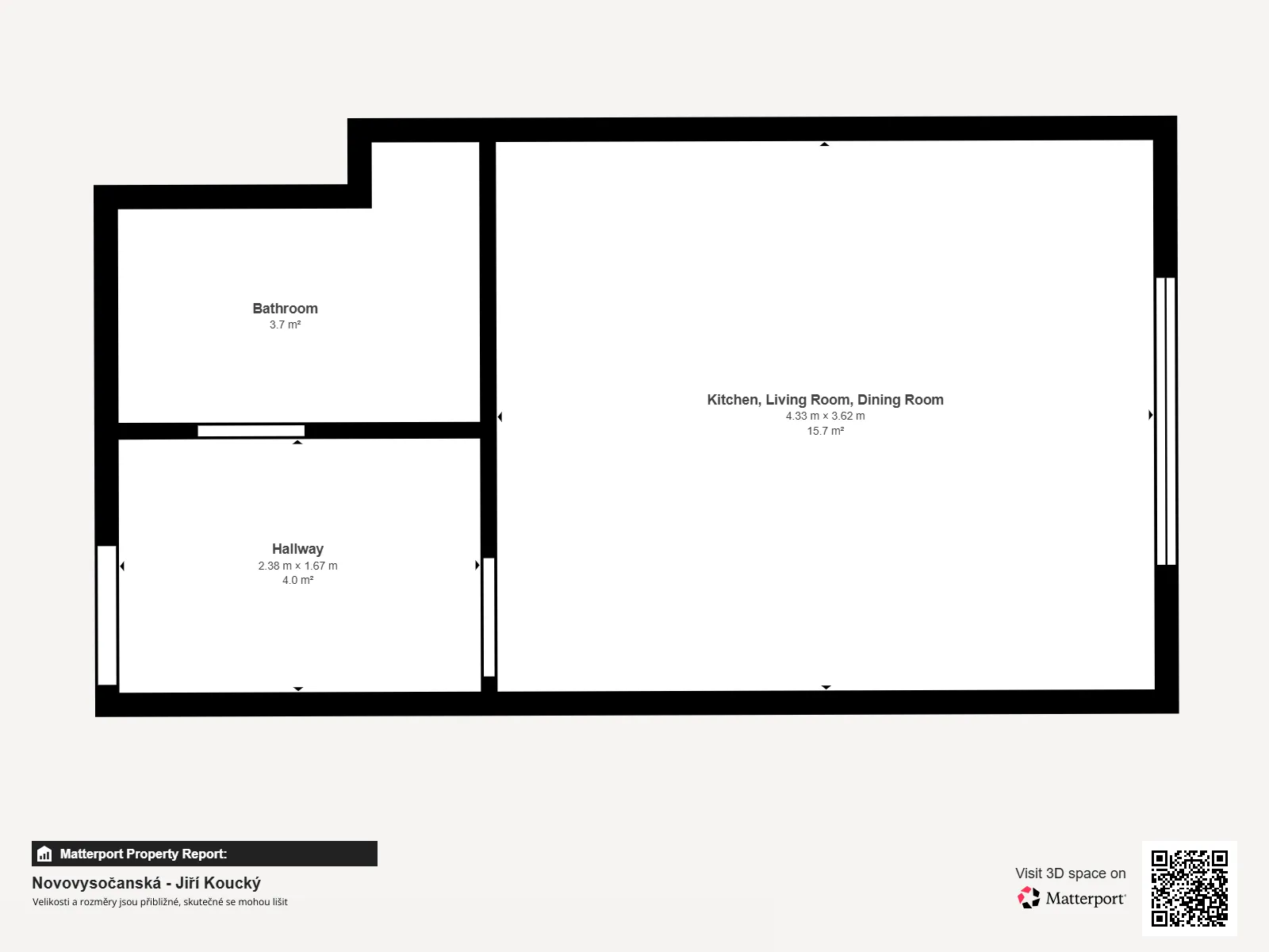 Dispozice je funkční a praktická, ideální pro komfortní bydlení jednotlivce.